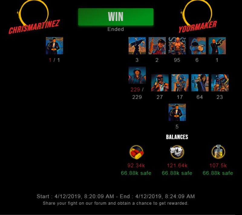 Check my latest fight ! chrismartinez vs yourmakeryourmaker (41)in #drugwars-fight • 7 years ago #gaming #fight #dw