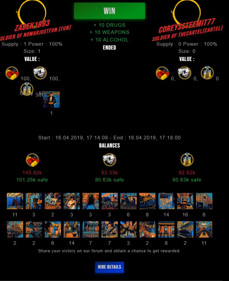Congratulations @zabek1993 ! Your fight received an upvote of 3.5% from the King Dealer as incentive for your activity and as a gratitude for your support to the game.