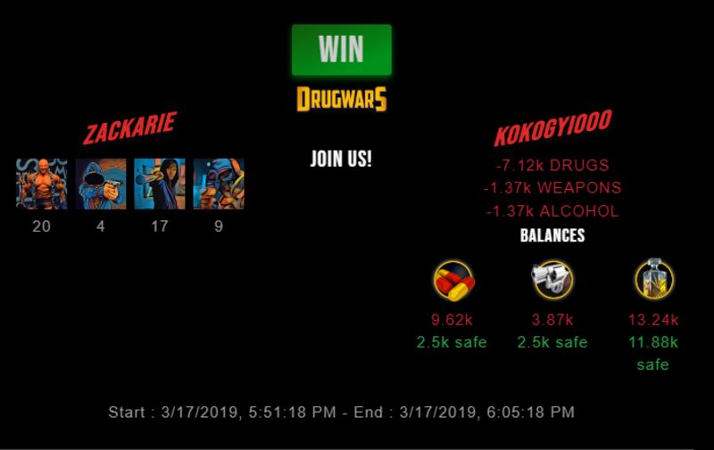 Check my latest fight ! zackarie vs kokogyi000 zackarie (40)in #drugwars-fight • 7 years ago #gaming #fight #dw