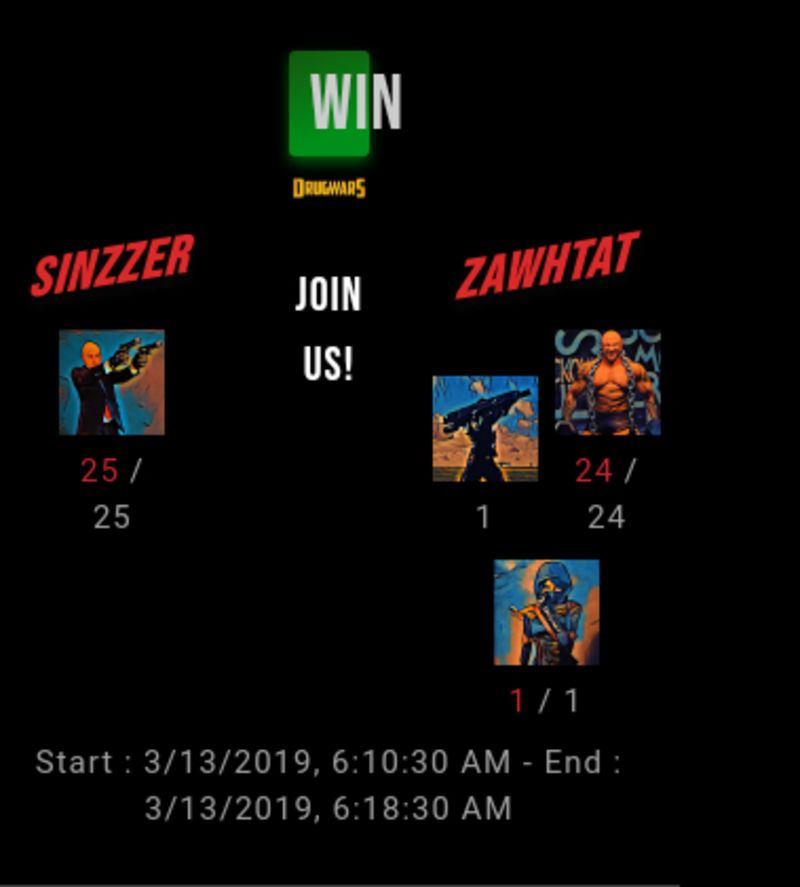 Check my latest fight ! sinzzer vs zawhtatzawhtat (47)in #drugwars-fight • 7 years ago #gaming #fight #dw