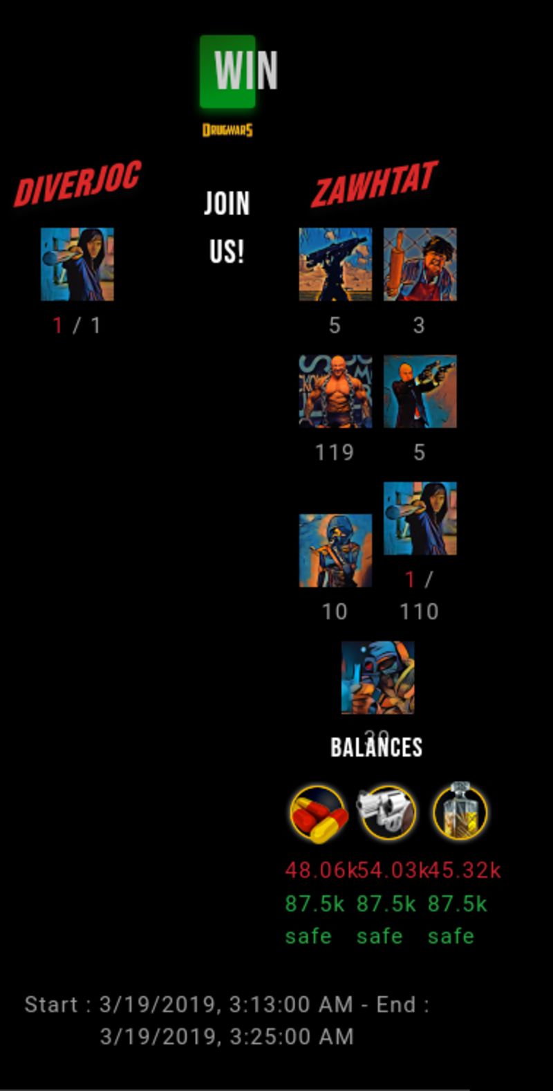 Check my latest fight ! diverjoc vs zawhtat zawhtat (47)in #drugwars-fight • 7 years ago #gaming #fight #dw