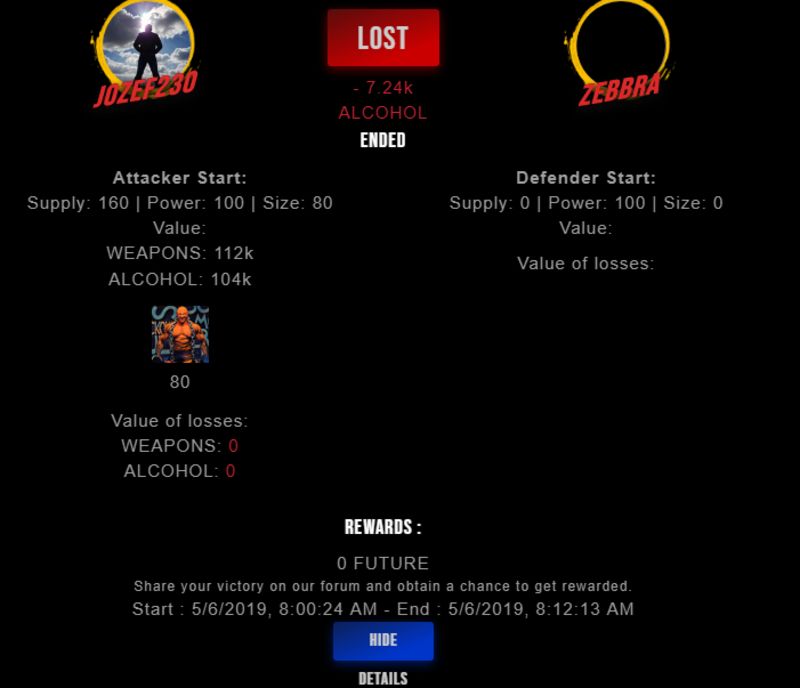 Congratulations @zebbra ! Your fight received an upvote of 1.9% from the King Dealer as incentive for your activity and as a gratitude for your support to the game.