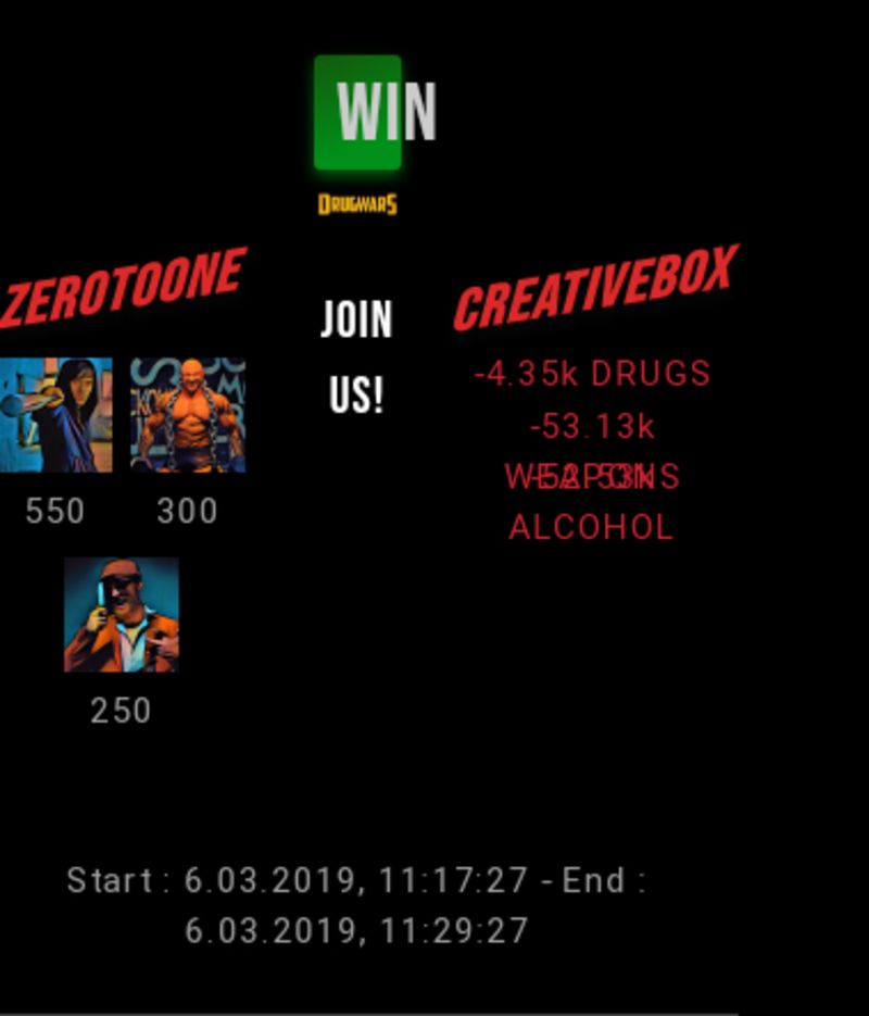 Check my latest fight ! zerotoone vs creativeboxzerotoone (55)in #drugwars-fight • 7 years ago #gaming #fight #dw