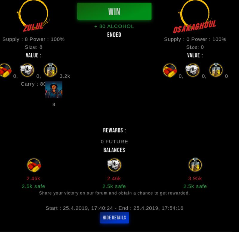 Congratulations @zulul ! Your fight received an upvote of 8% from the Dealer as incentive for your activity and as a gratitude for your support to the game.