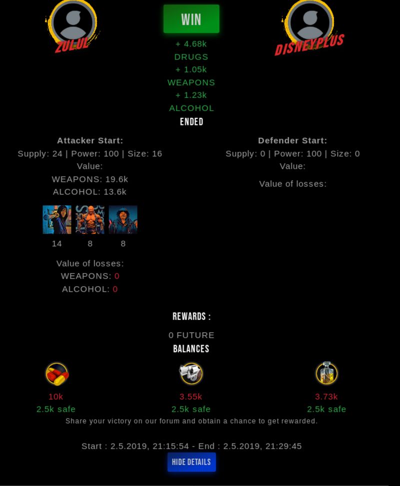 Check my latest fight ! zulul vs disneypluszulul (35)in #drugwars-fight • 7 years ago #gaming #fight #dw