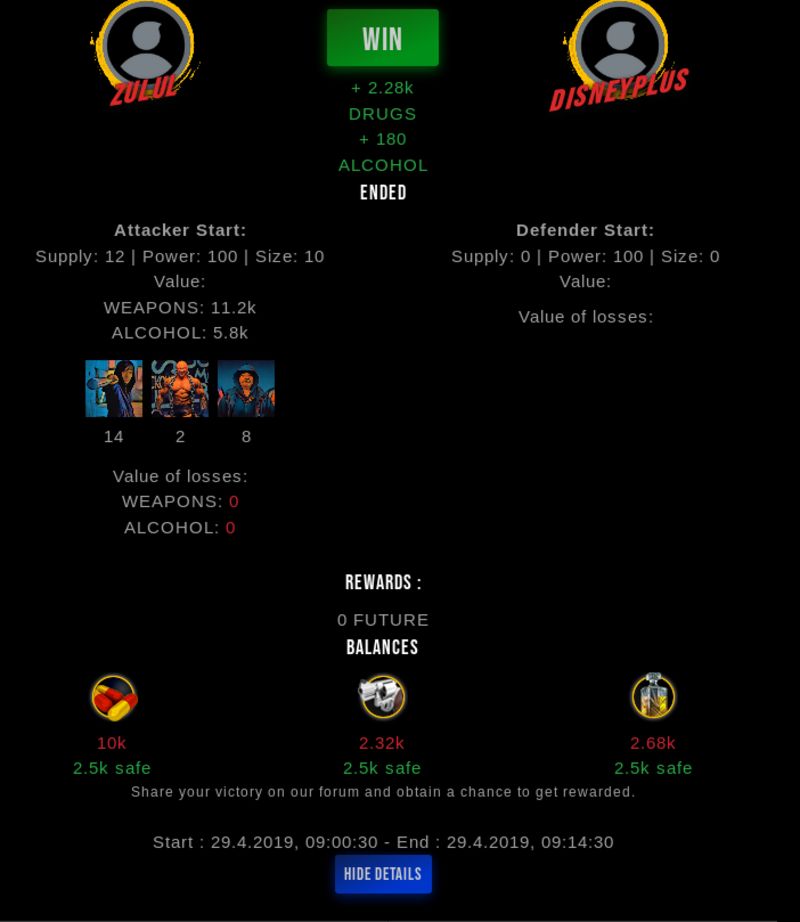 Check my latest fight ! zulul vs disneypluszulul (35)in #drugwars-fight • 7 years ago #gaming #fight #dw