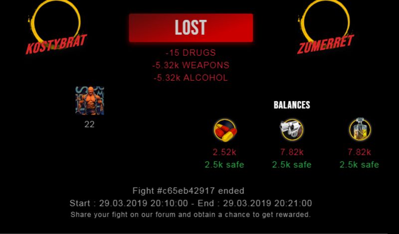 Check my latest fight ! kostybrat vs zumerretzumerret (49)in #drugwars-fight • 7 years ago #gaming #fight #dw