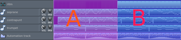 En la imagen anterior podemos observar como se divide el tema en dos partes: A y B. Ambas partes se tocan en el siguiente orden: A B A B A.