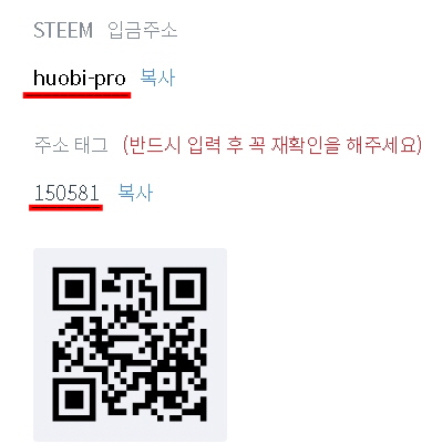 가입해 주시고 후오비 "STEEM 입금주소"와 "주소태그"와