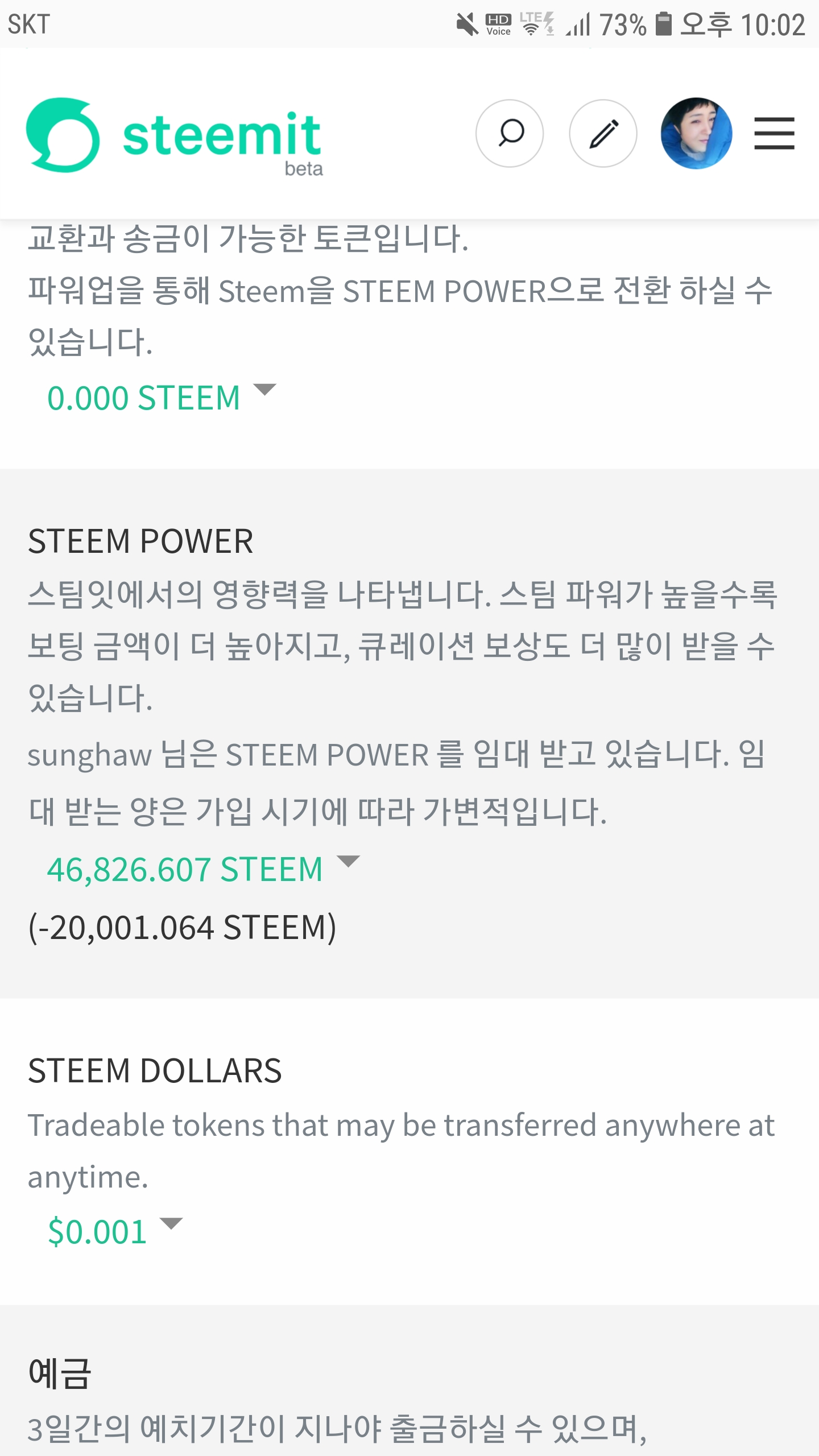 직접 스팀기준 0.5스팀 이상을 후오비 본인계정에