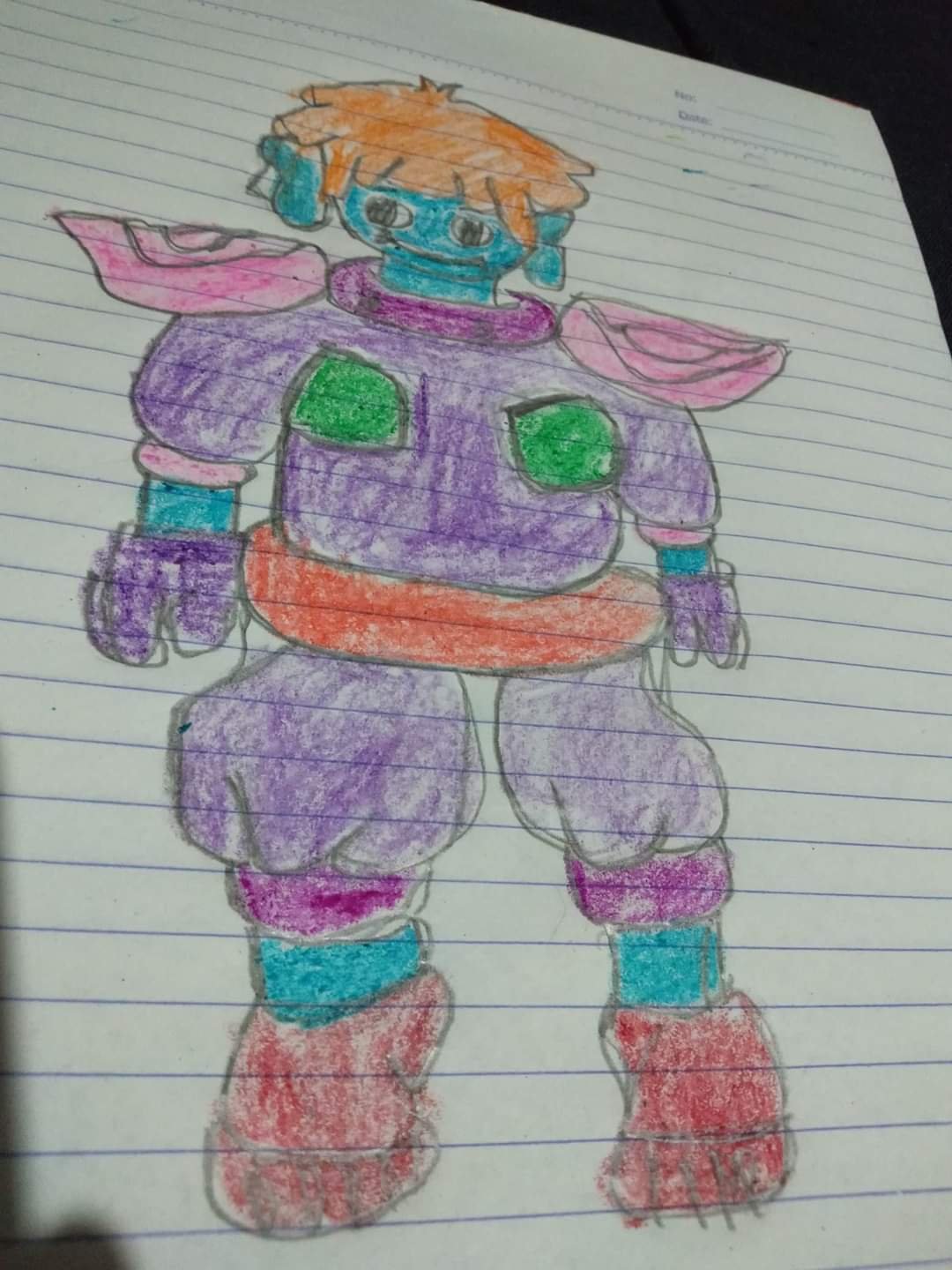 Im making a drawing using paper and crayons this time instead of the digital that I had been doing before. I couldn't get the light and angle right sorry I had to tilt it a bit to avoid capturing the shadow of my phone and hand. This is my version of Volkir the zombie character made by @cabalen