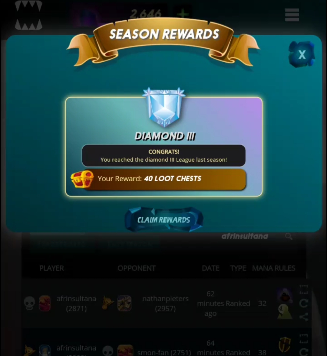 I completed diamon 3 but i am not so happy with cards.But i got one gold card.Its price 0.80$. And others rewards i got dec potion.But at then i will say its not bad. Because i tried my best at last time.I hope o will be in Diammon league next season also.