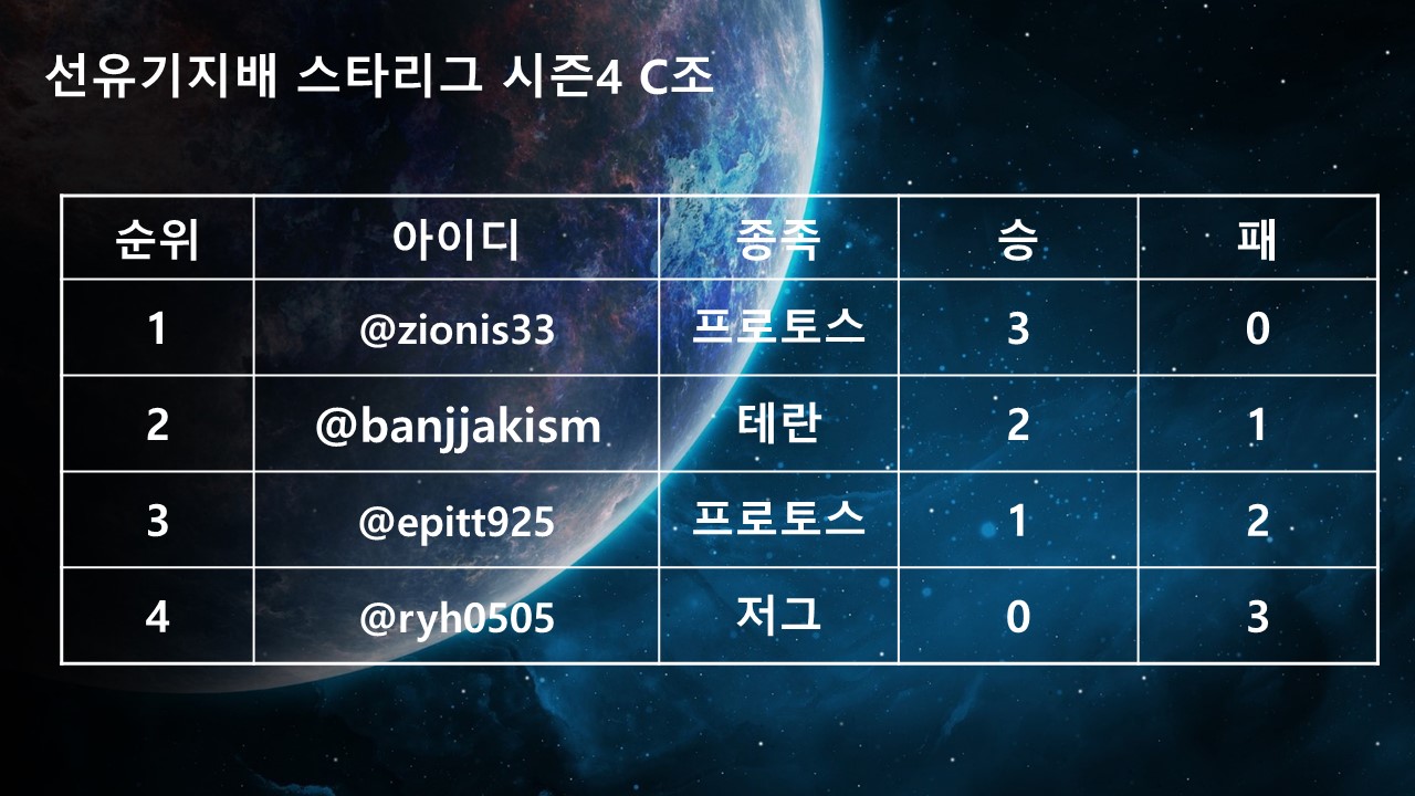 [경기결과] 선유기지배 스타리그 시즌4 C조