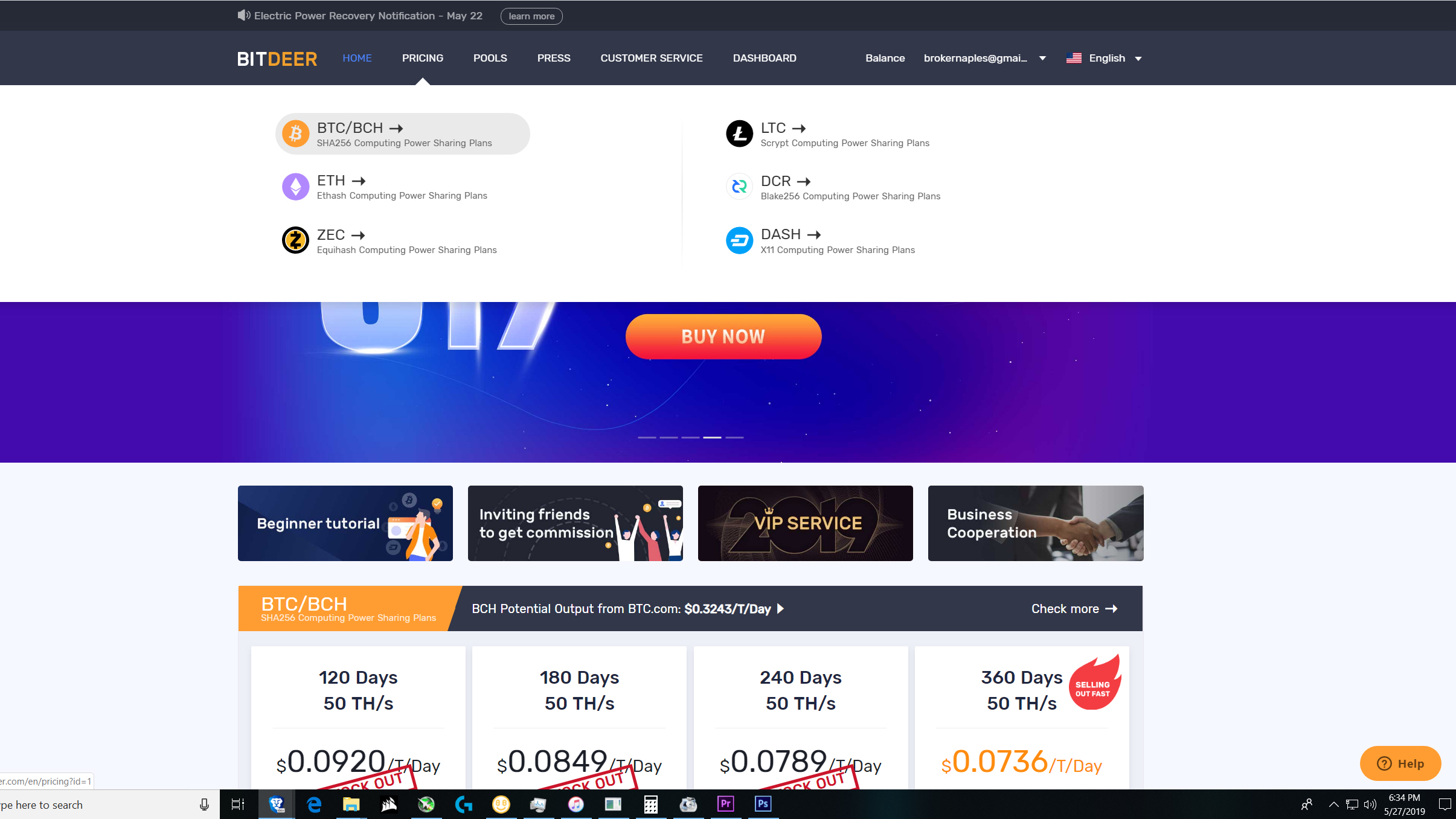 Using this money for the suggested cloud mining contract