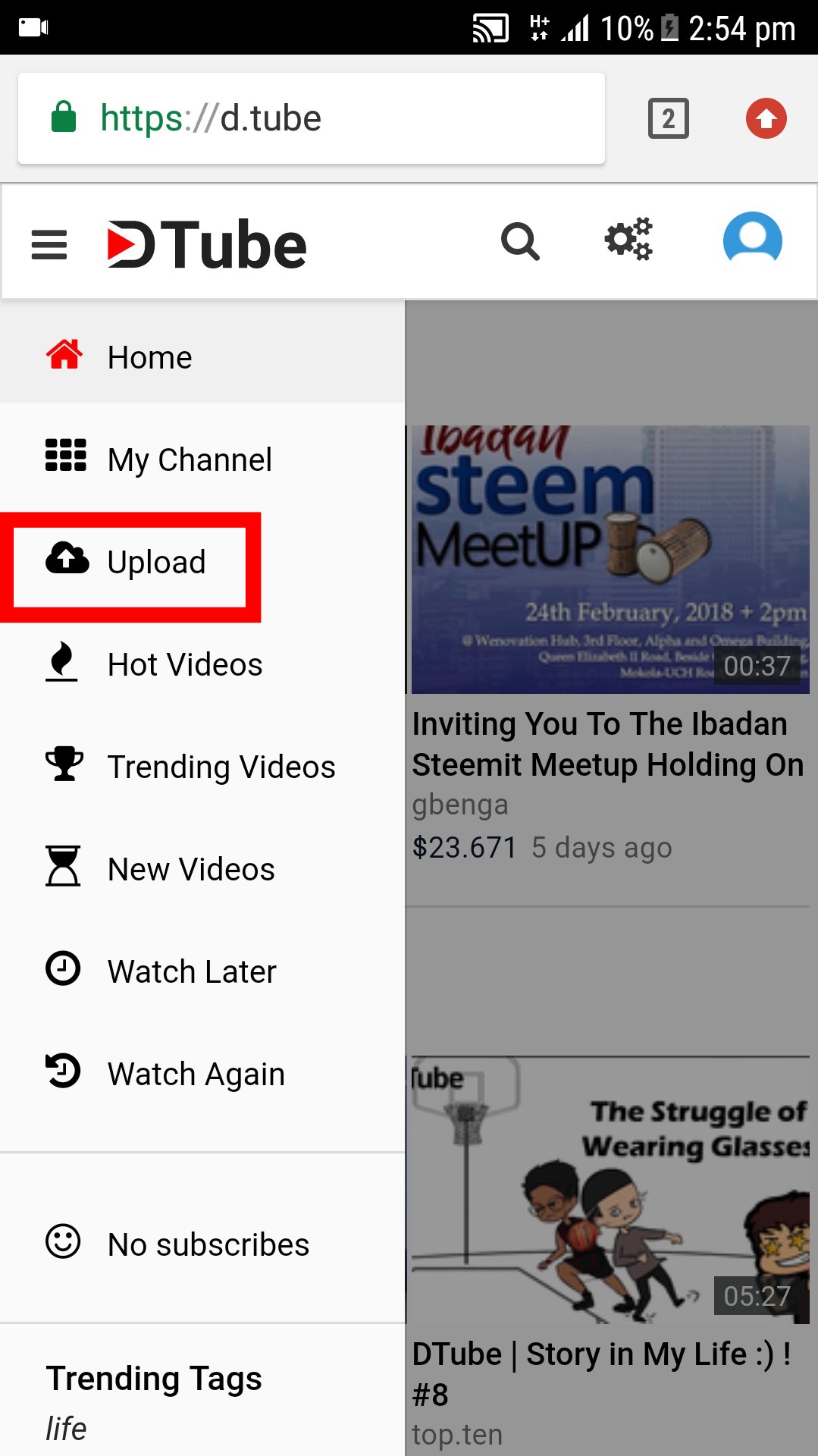 *tap the first result as shown in the image above and it will take you to dtube' s website