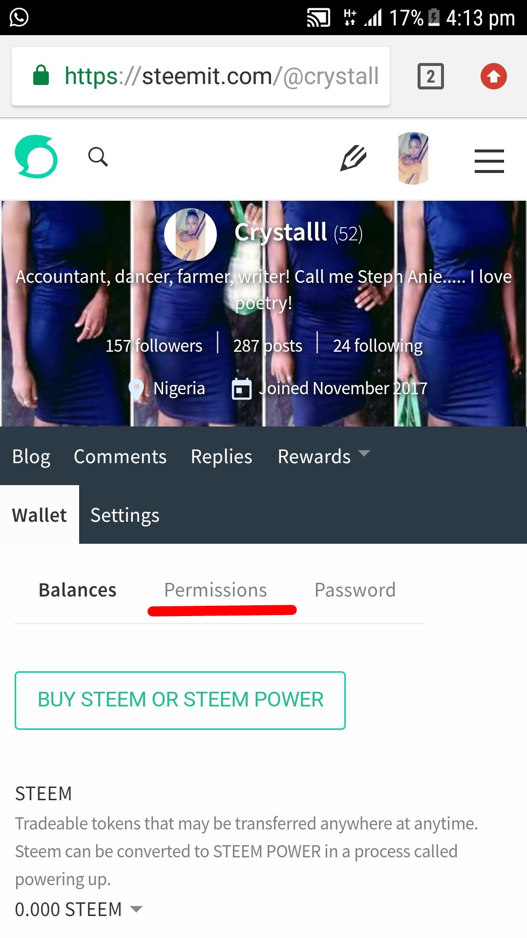 - Go to your steemit account and click on wallet as shown above