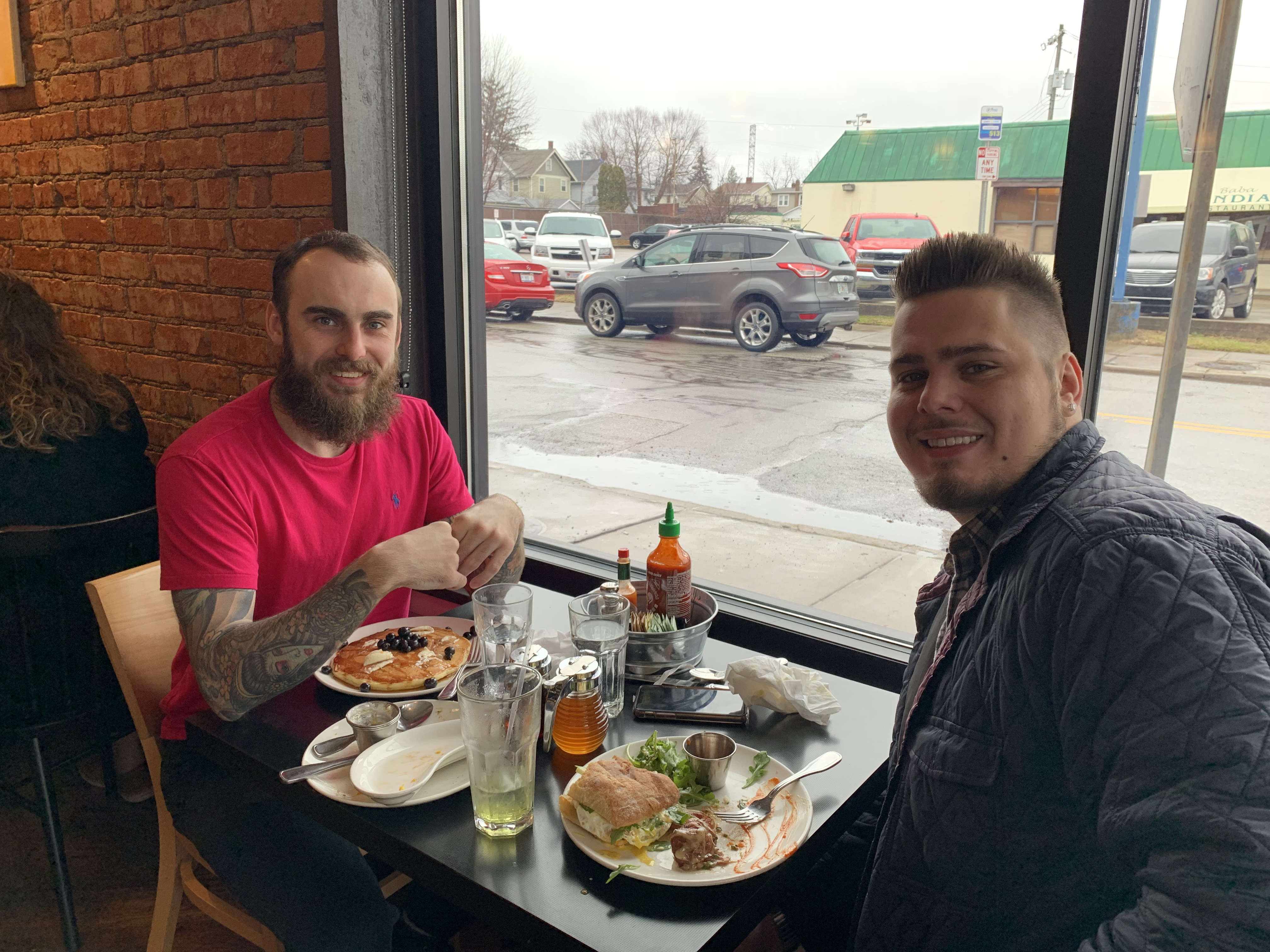 My Brother and I refueling the following morning at Sleepy Bee Cafe