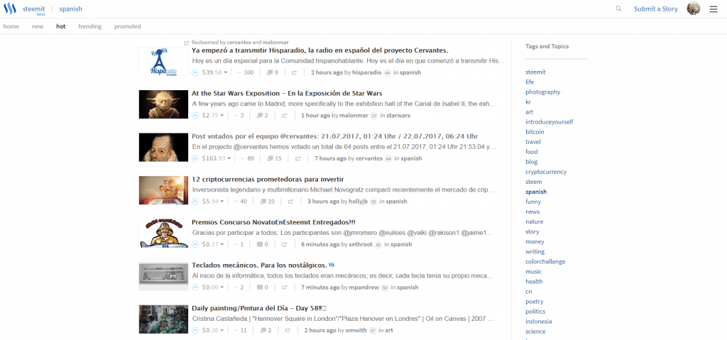 Steemit is a social network based on the STEEM blockchain, a cryptocurrency which is mined based on the social network and whose capital is distributed among the users through the Steem Dolars, a cryptocurrency based on the STEEM blockchain. What interests us is that the social network replaces traditional blogs, portals to share stories and others, earning income in cryptocurrencies directly, according to the quality of our content. The better the same, the more we can get.