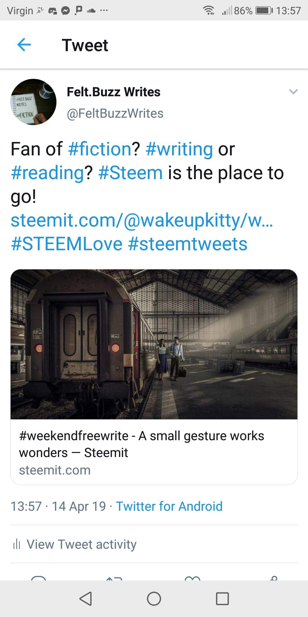 Hey you! Loved your weekend Freewrite! Resteemed upvoted tweeted