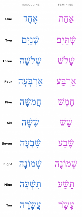 Stay with me here! The dry part is almost done, and the story of Noah is just around the corner. You should be seeing simple numbers in each text we read - below is the reading, followed by our first ten numbers which help us differentiate (f) or (m) for people and things.