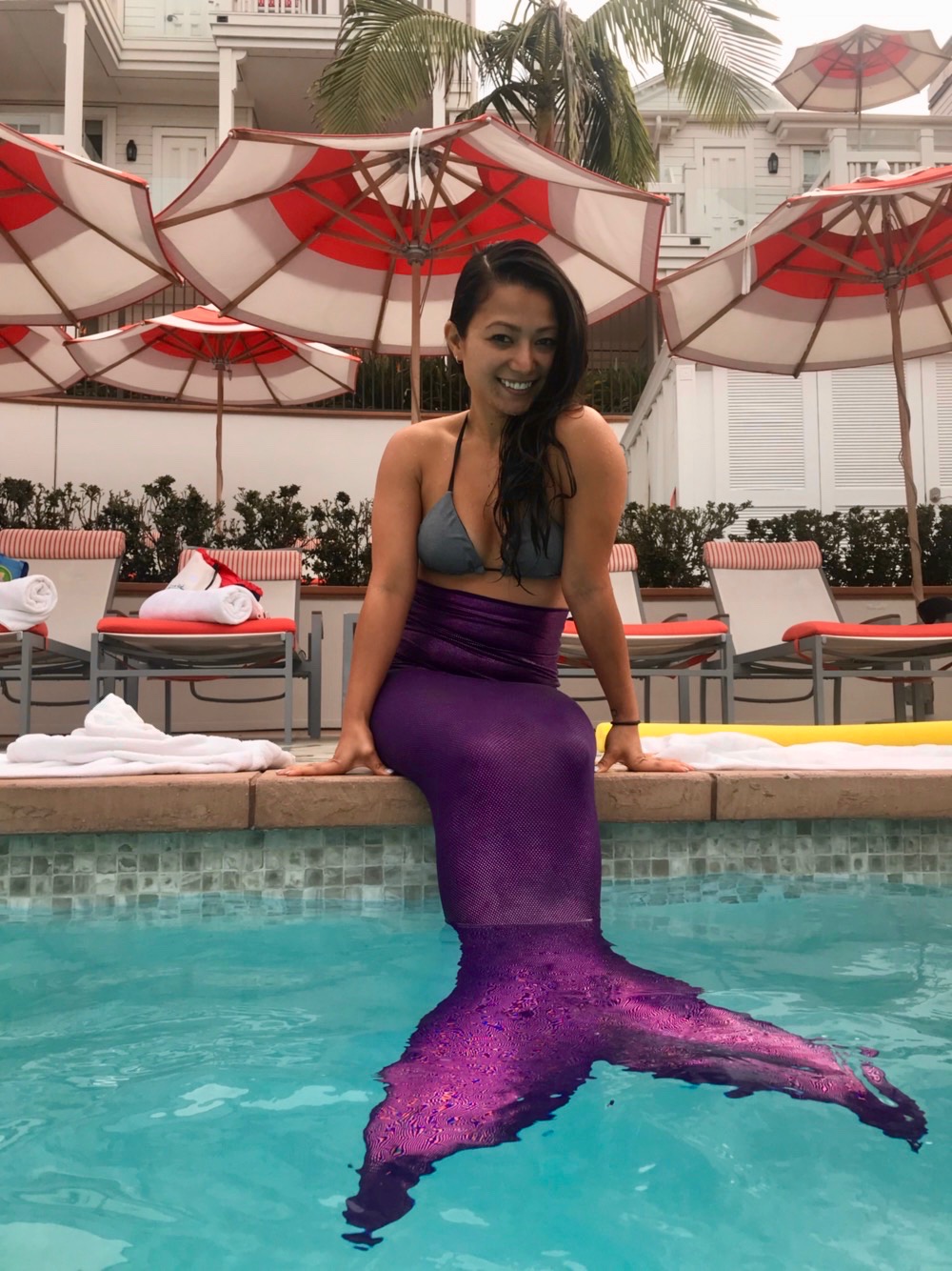 My friend Carrie and I both had birthdays that month. And since she knew I liked being active, she suggested doing Mermaid Fitness at the Coronado Hotel & Resort. It's actually a lot harder and more of a workout than I thought it would be. It requires a lot of core muscles.