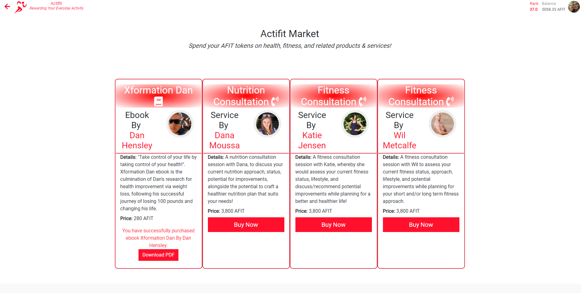 in the @actifit Market Place on their website at https://actifit.io/