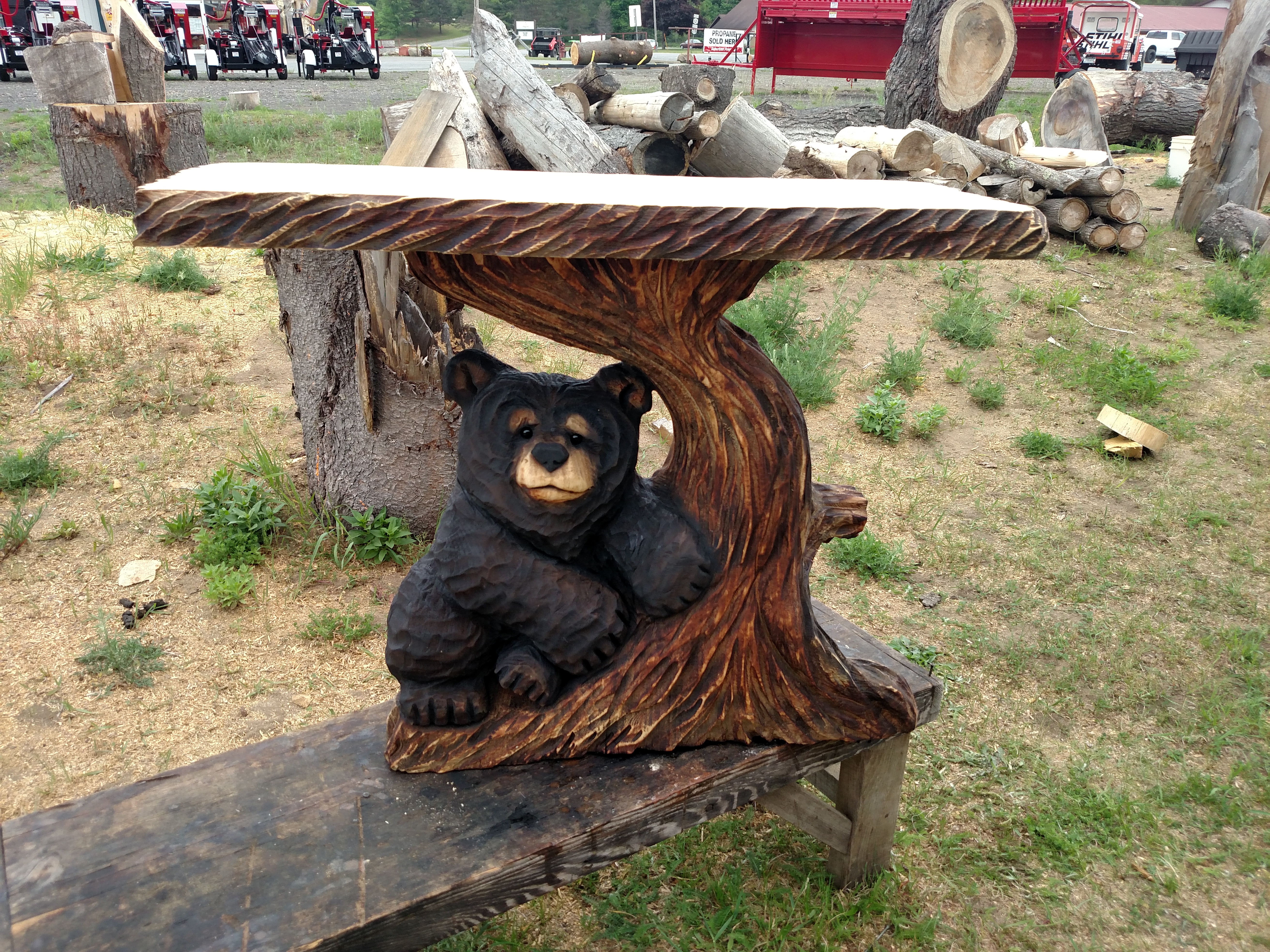 Another functional piece, a chainsaw carved bear table start to finish, in time lapse form. Bears are something I wont ever be able to get away from, they are the best seller by far. Always have been. Carved so many of them I can probably carve one blindfolded, although I've never tried, that might be a sight to see.
