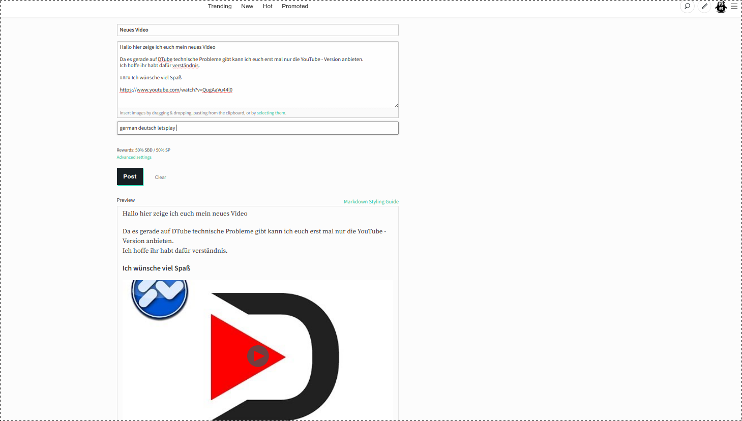 Damit du aber deine Videos trotzdem hier präsentieren kannst, empfehle ich einfach auf https://steemit.com/ einen ganz normalen Post zu erstellen und den Youtube - Link mit rein zu kopieren.