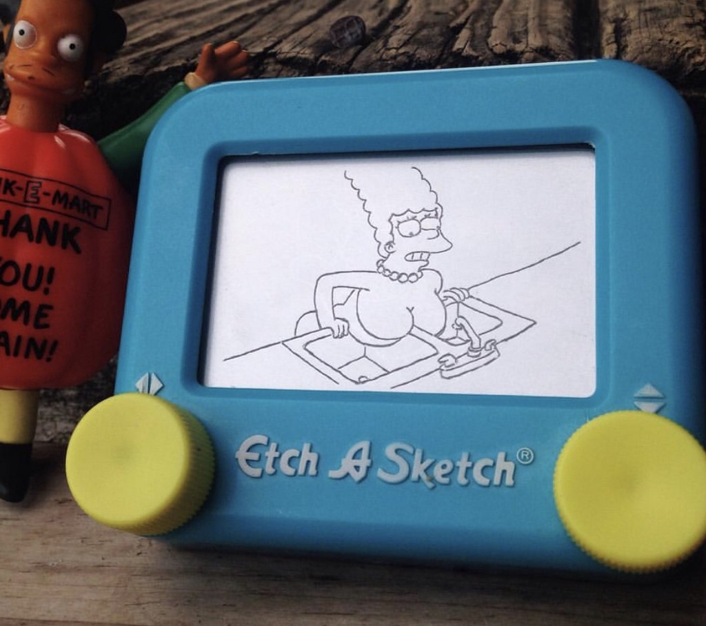 Nice etch-a-sketch Pen... I wasn't aware Marge Simpson was so........ handy in the kitchen lmao!!