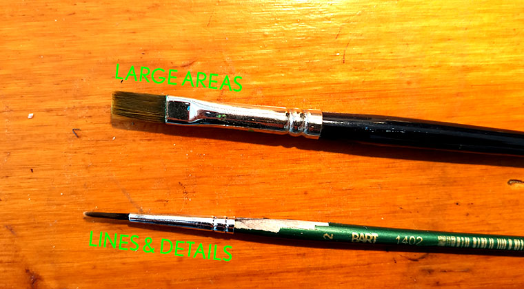 First, use the right tool for the job. If you want to pull a line, use a fine round tip brush; if you are filling a big area, then use a larger flat tip brush. Using the right tool for the job greatly reduces the risk of fuck ups, and make your task much easier & faster.