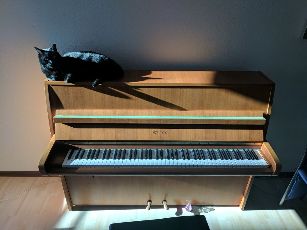 First of all I should say that I've never been a cat person :D I am more like dog person. I had a dog myslef before but besides sitting on the piano, she would sit on my lap :D