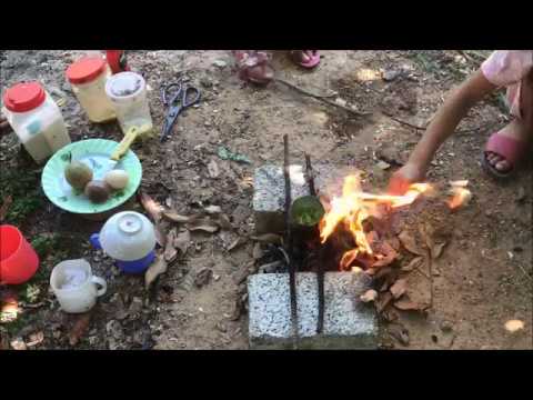 Today, we organize play cooking outdoor. Main materials include: Pergularia minor Andr - chicken eggs and passion fruit.