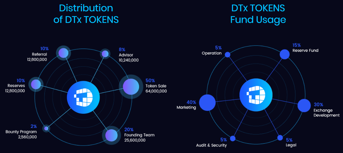 Đối với quỹ DTX token sẽ được team DEV phân phối như sau: