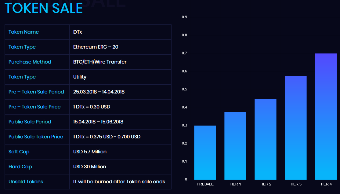 Giá của token bán hàng công khai: 1 DTX = 0,375 USD - 0,700 USD