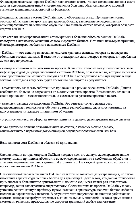 Специалисты и авторы стартапа DxChain уверяют нас, что данную децентрализованную систему можно применять абсолютно во всех сферах жизни, где необходима обработка и хранение огромных массивов данных. И это понятно. Не каждый день можно встретить проект аналогичный DxChain.