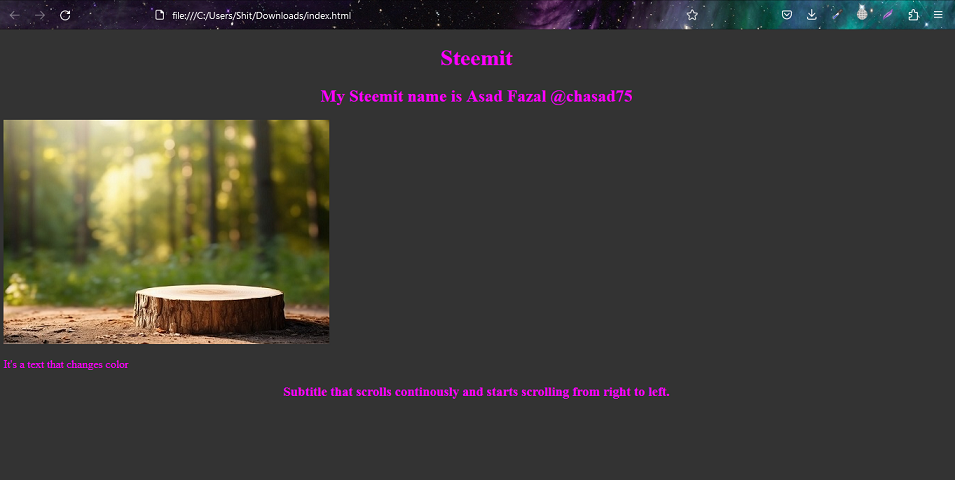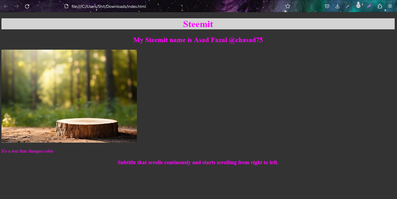Greetings Everyone! I hope everyone is enjoying their life with family and friends by the Grace of Allah Almighty. New week has started with new lessons and SEC challenges. I decided to first do the homework because HTML and CSS is my favorite part. Today the topic is about Transitions, Animations and Transform using HTML5 and CSS3 by @kouba01. So lets start homework. :)