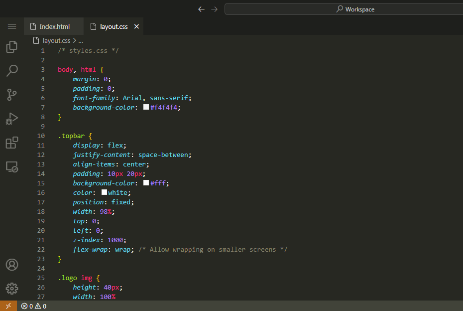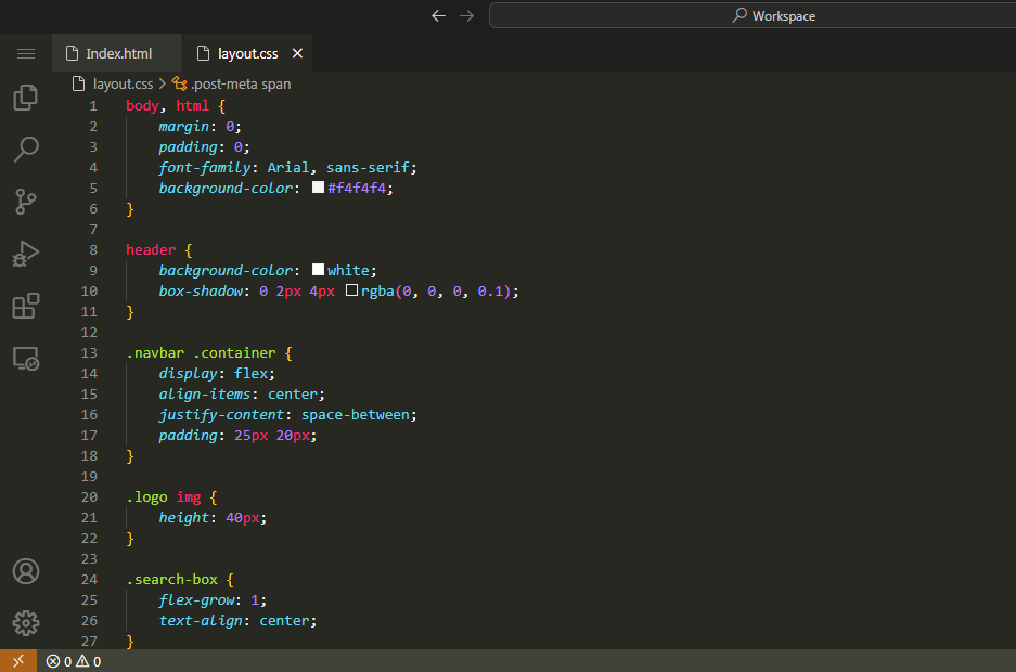 CSS Code of First Webpage