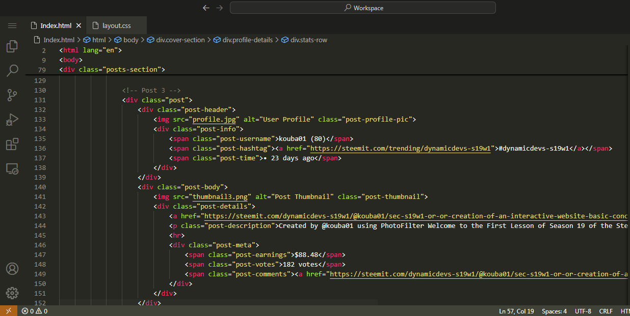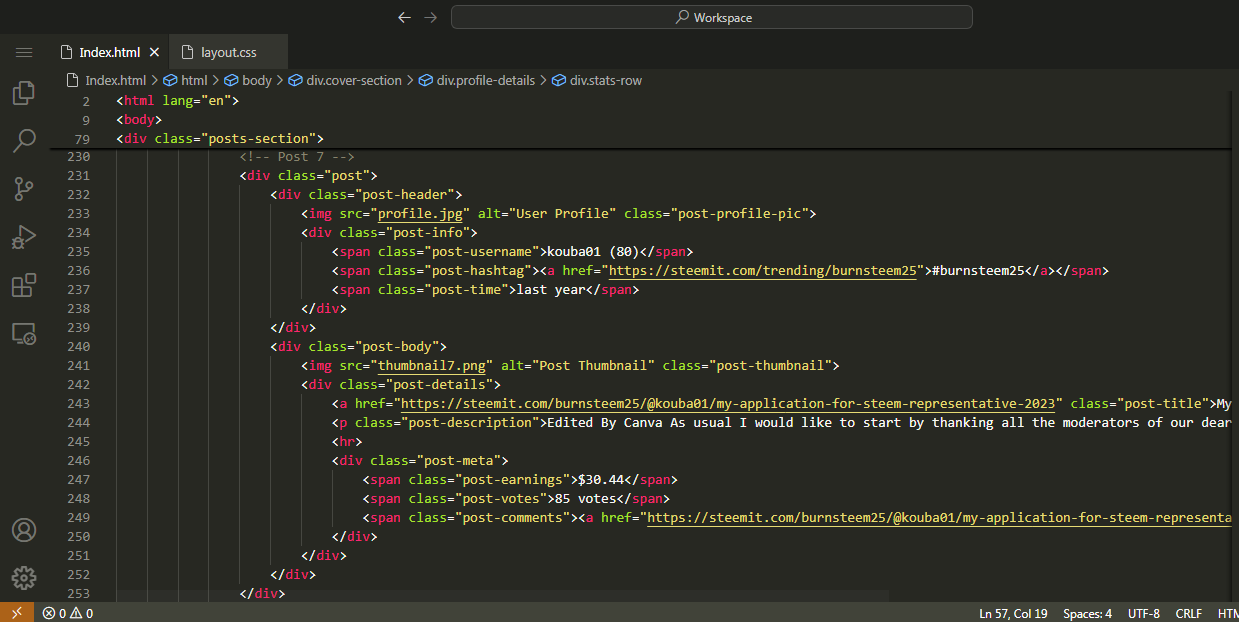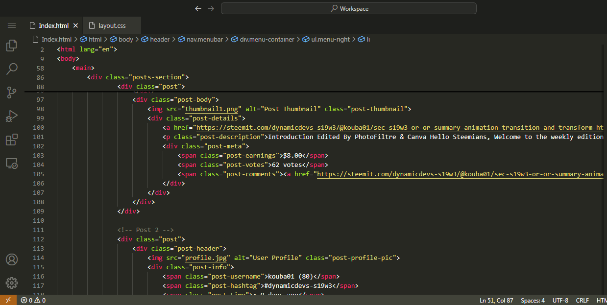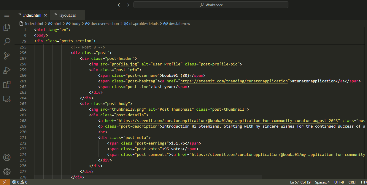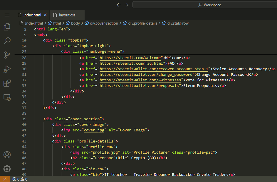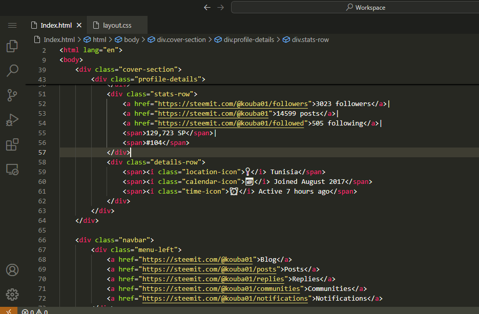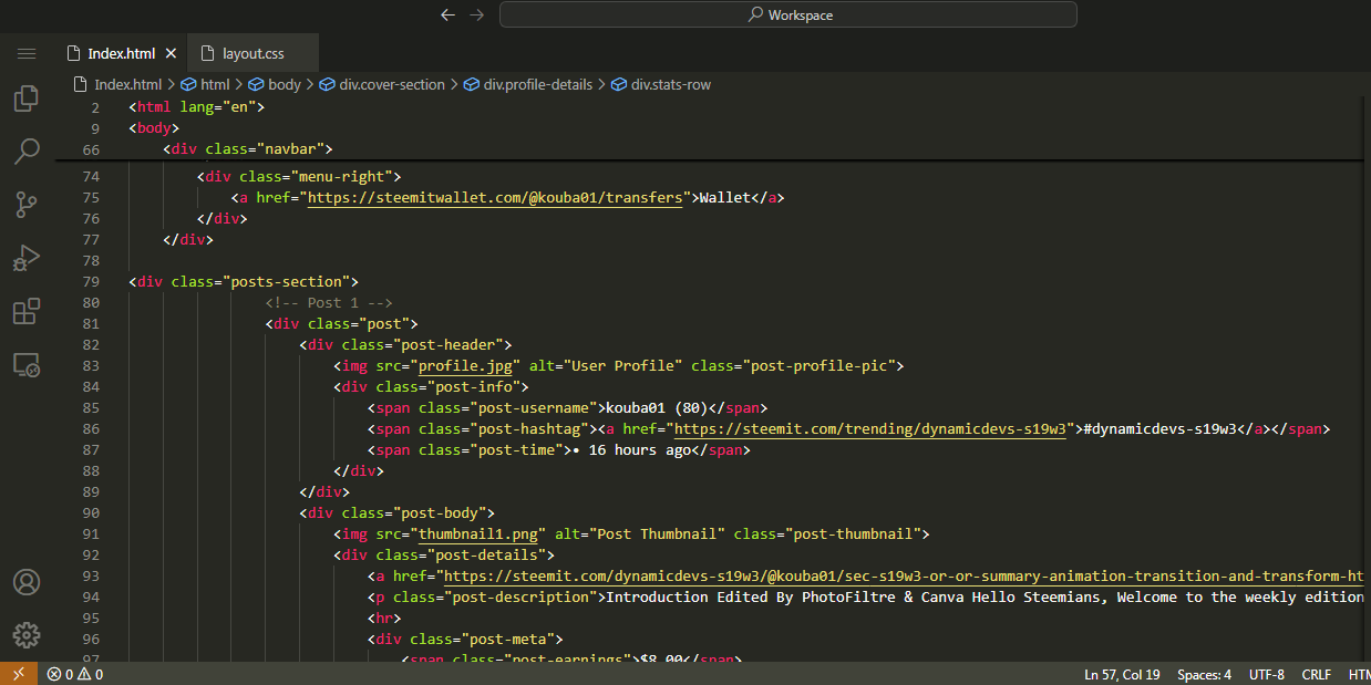 Recreating Webpage of @kouba01 Steemit Profile |