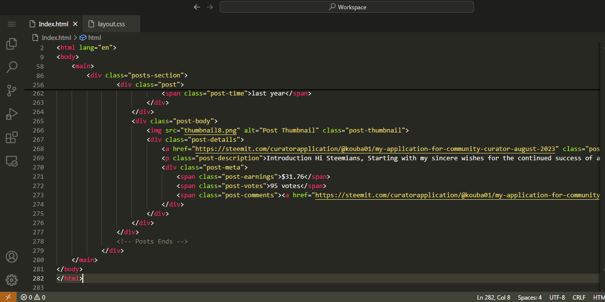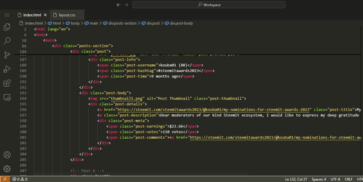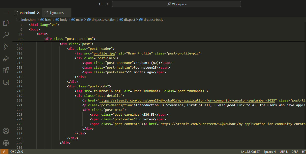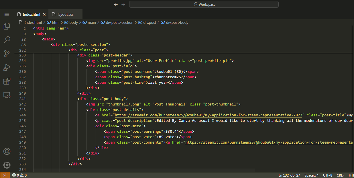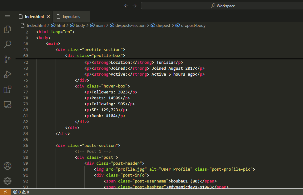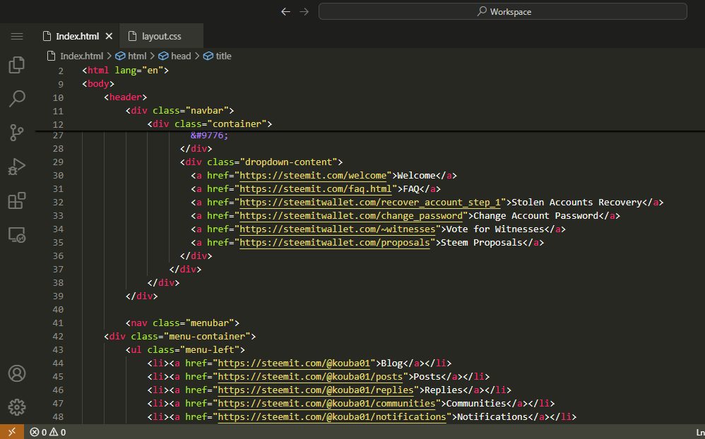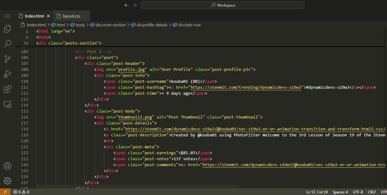 Recreating Webpage of @kouba01 Steemit Profile |
