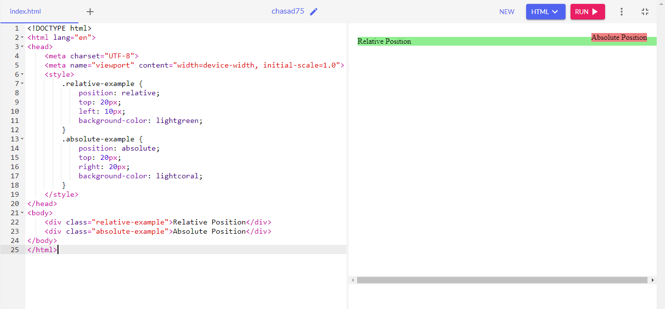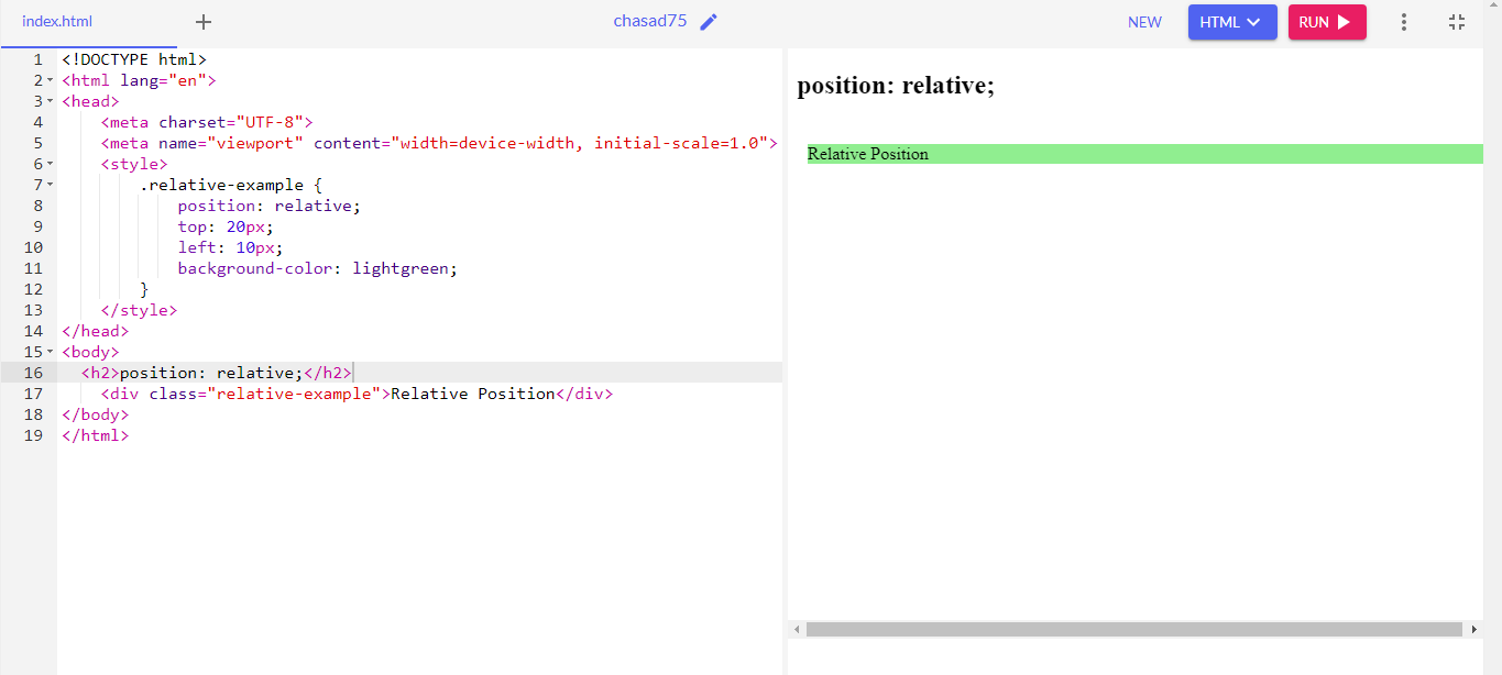 When we use relative position property, it positioned relative to its normal position. We can set top, left, bottom, right properties but it will move it away from its normal position. It helps to adjust the child container inside its parent container.