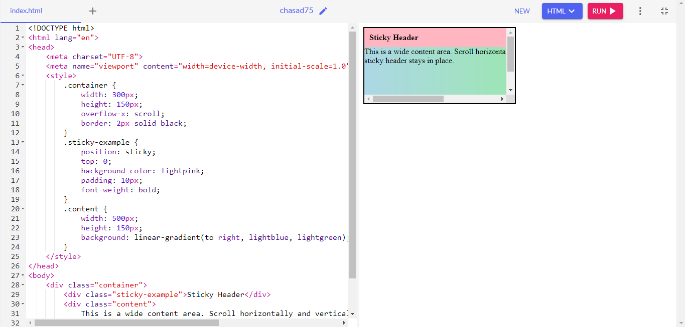 By using sticky position property we can make element sticky with the scroll. Once the scrolling is on top on the webpage it gets normal but when you scroll down it sticks with scroll. Example of it is sticky header or sidebars.