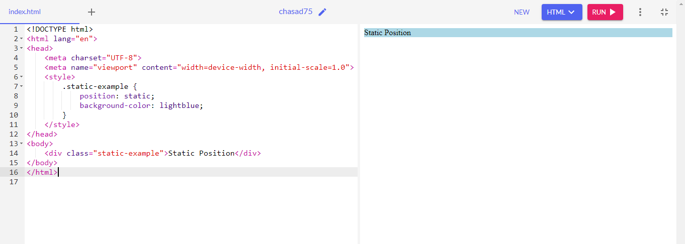By default it is set in CSS. By using static position, element follow the normal flow of a document. The position: static; is not positioned in a webpage in special way but with the flow of the page.