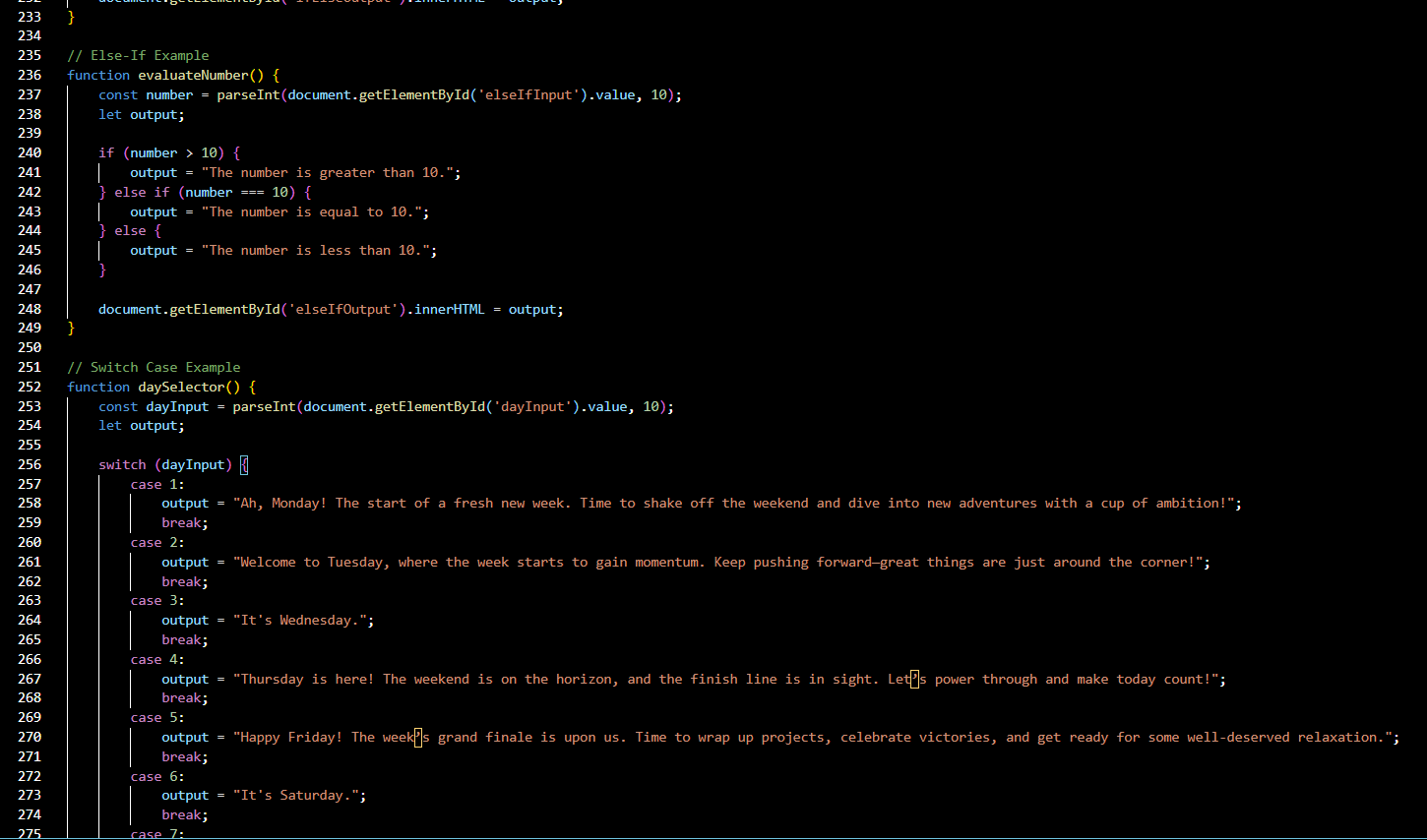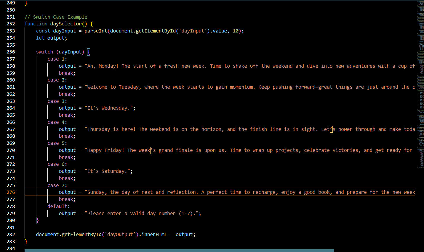 switch (day) {