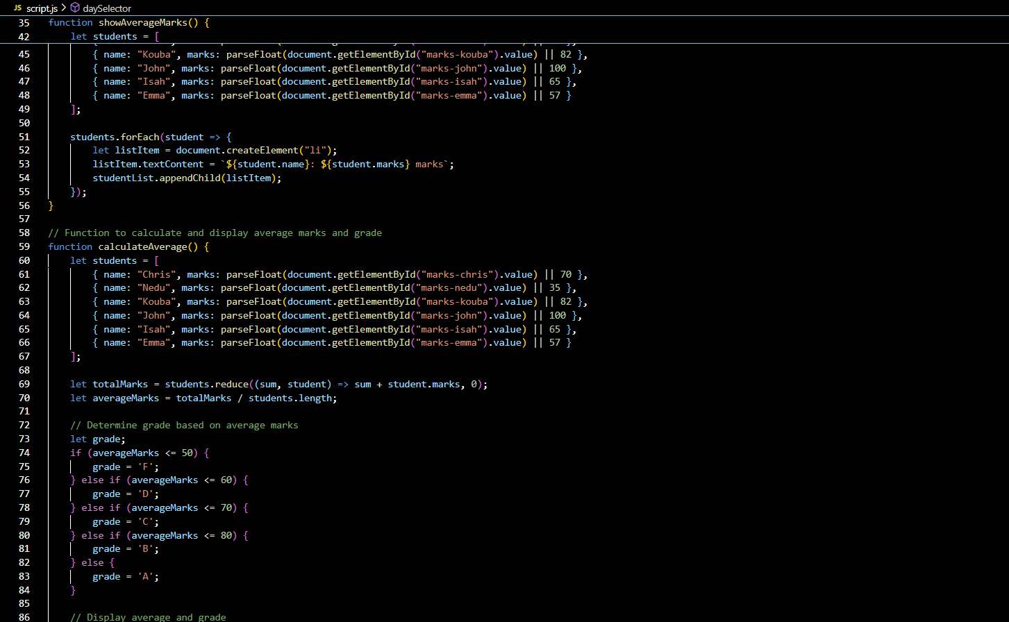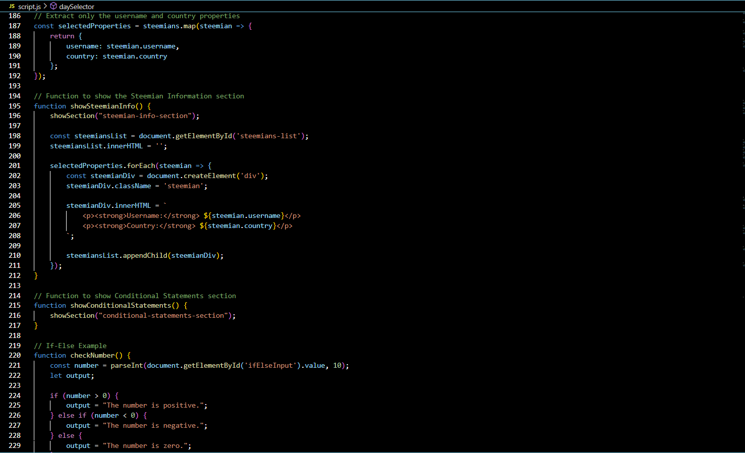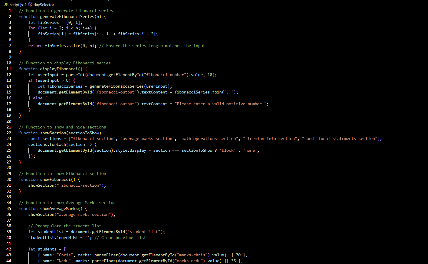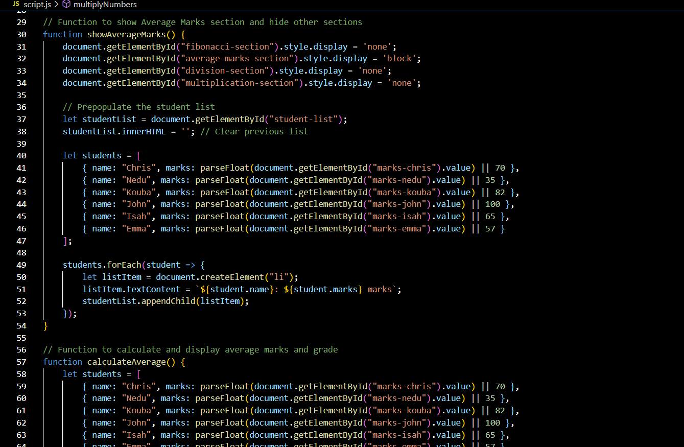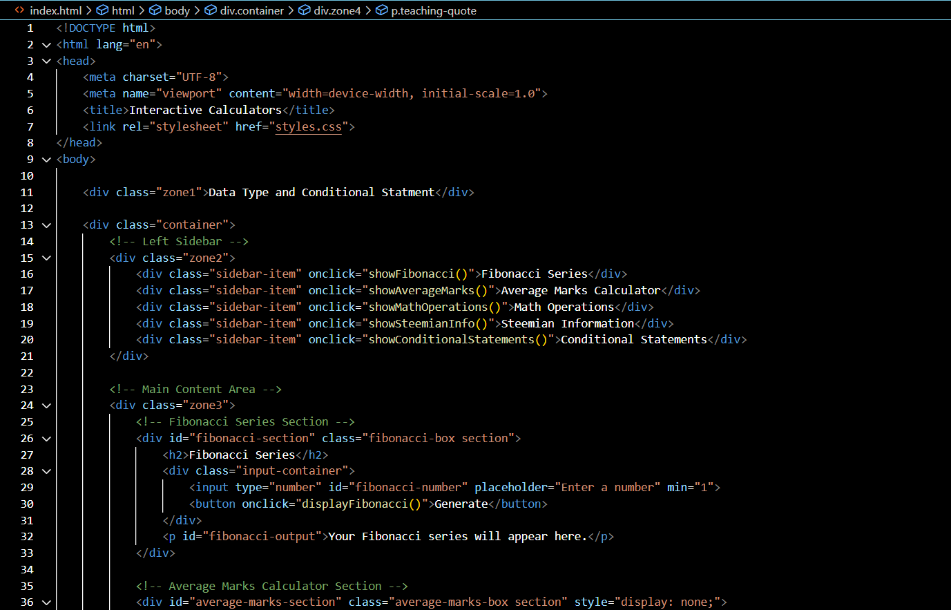Great job on the coding .The Fibonacci series and the average marks calculator are working well. I like you used dropdowns for different operations. The objects for Steemians looking good too. Your explanation of conditional statements is clear and helpful. Keep up the good work💖🤗🌸💞