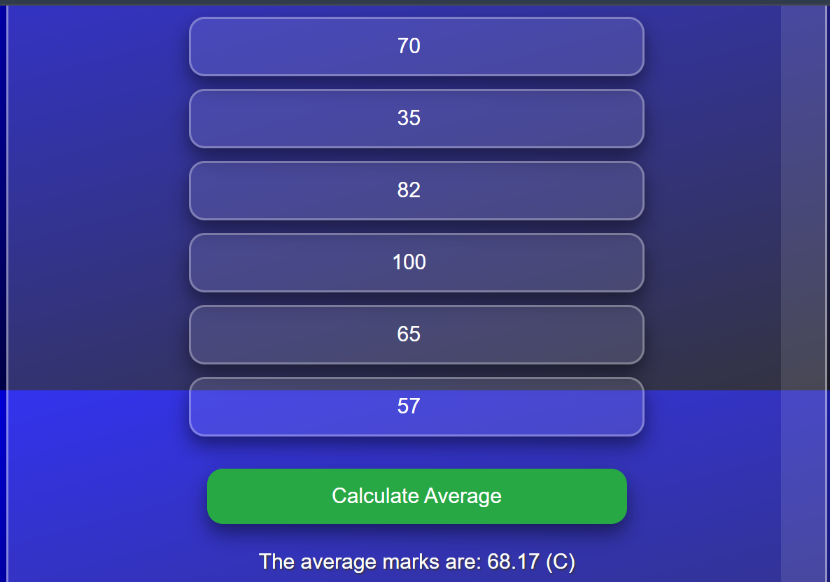 All the tasks like Fibonacci series, average marks calculation and the simple calculator is working wonderful.