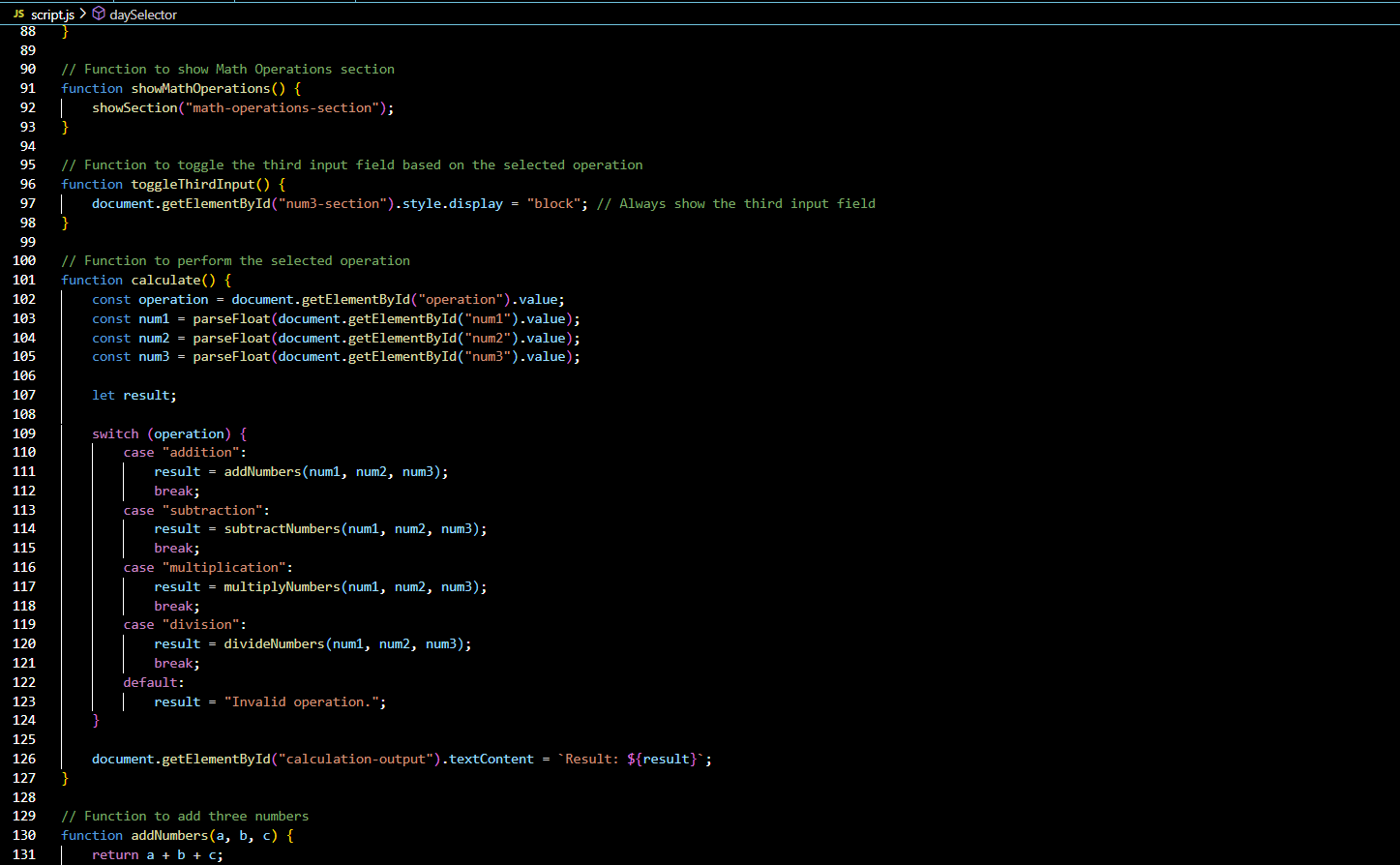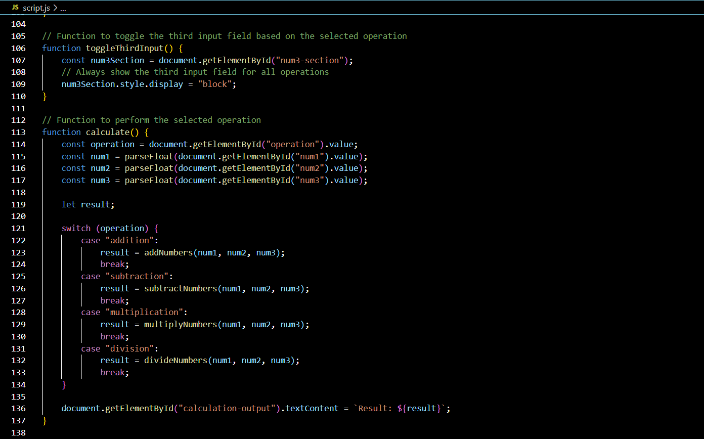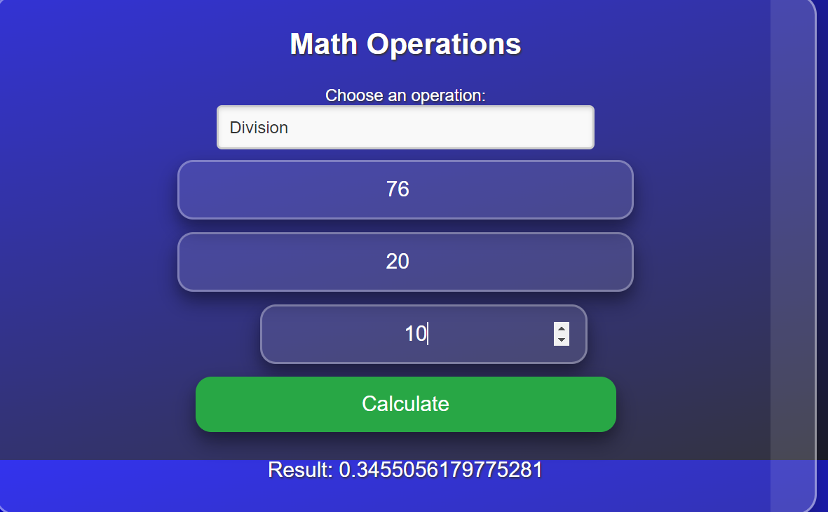 so Now we will move towards the code of division , multiplication that will use the JavaScript and take three inputs from the user then after calculation display the results. Here in my code I have added a dropdown that will switch the operations between division and multiplication and also added the addition and subtraction as well.