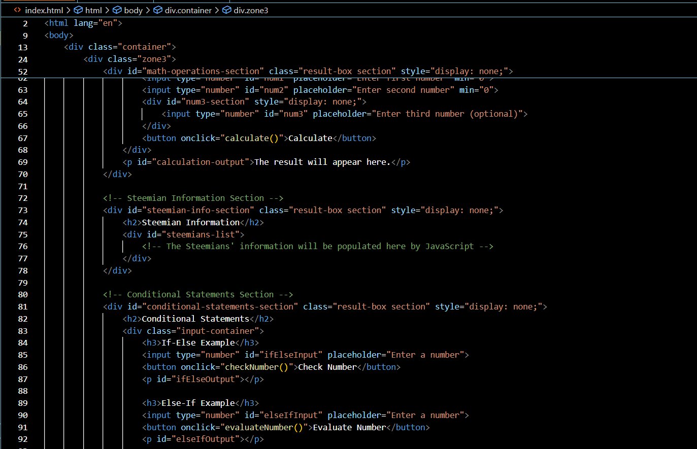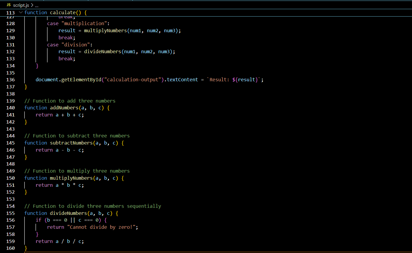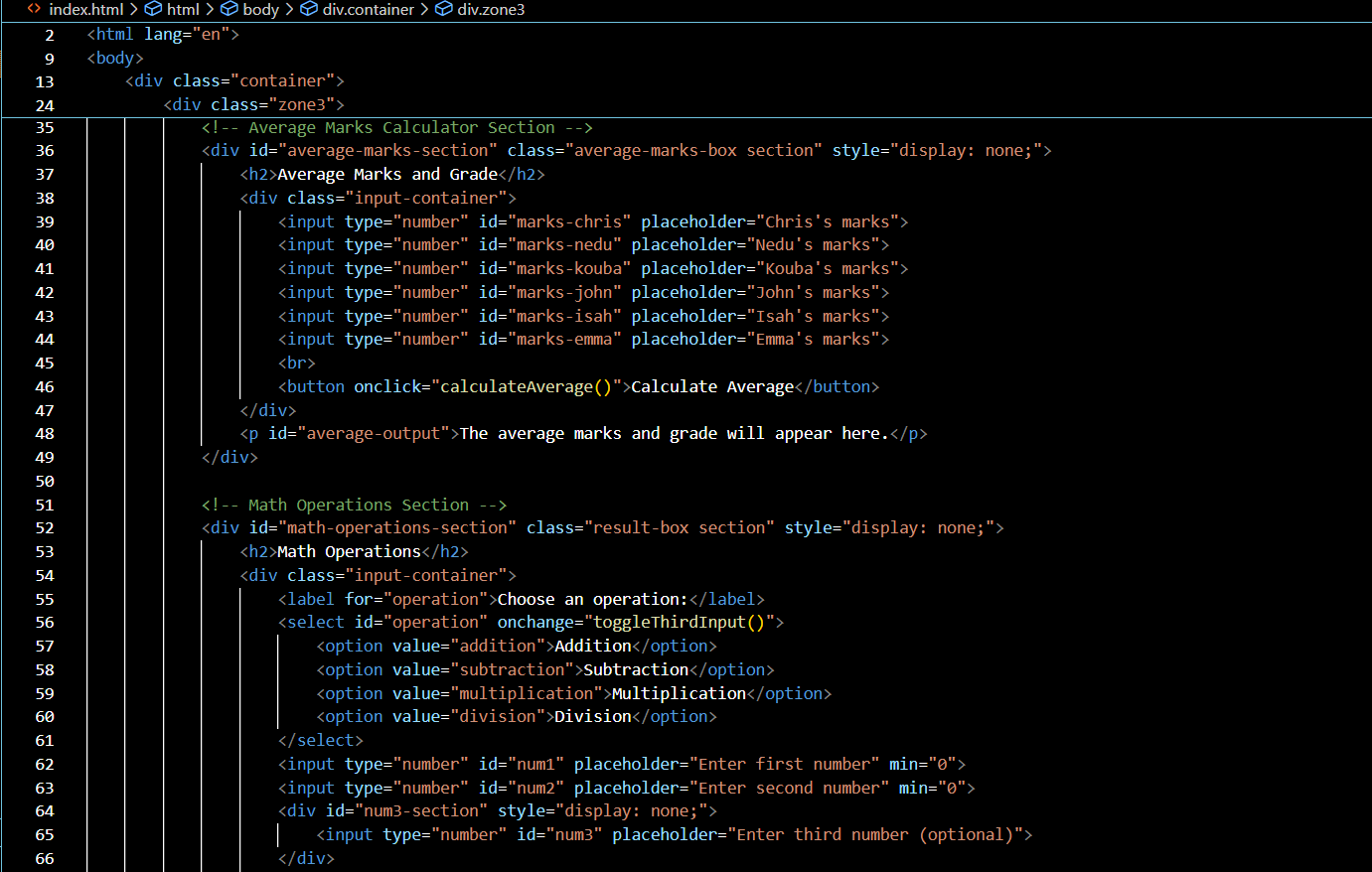 so Now we will move towards the code of division , multiplication that will use the JavaScript and take three inputs from the user then after calculation display the results. Here in my code I have added a dropdown that will switch the operations between division and multiplication and also added the addition and subtraction as well.