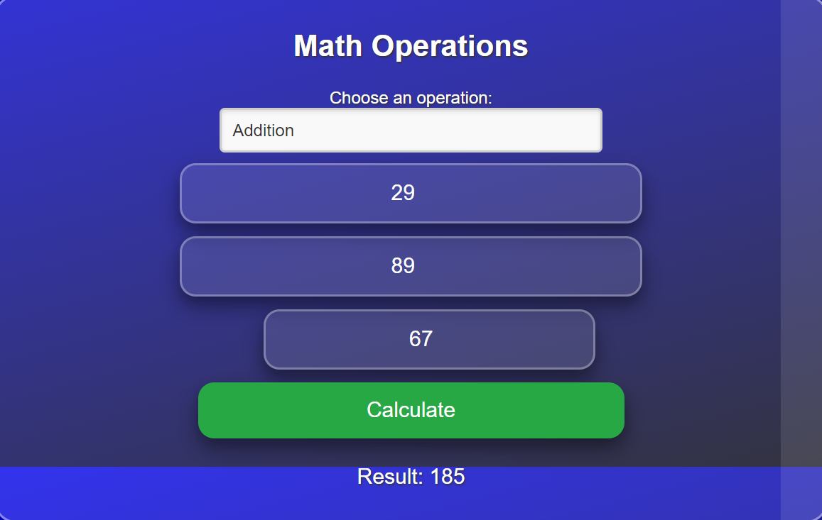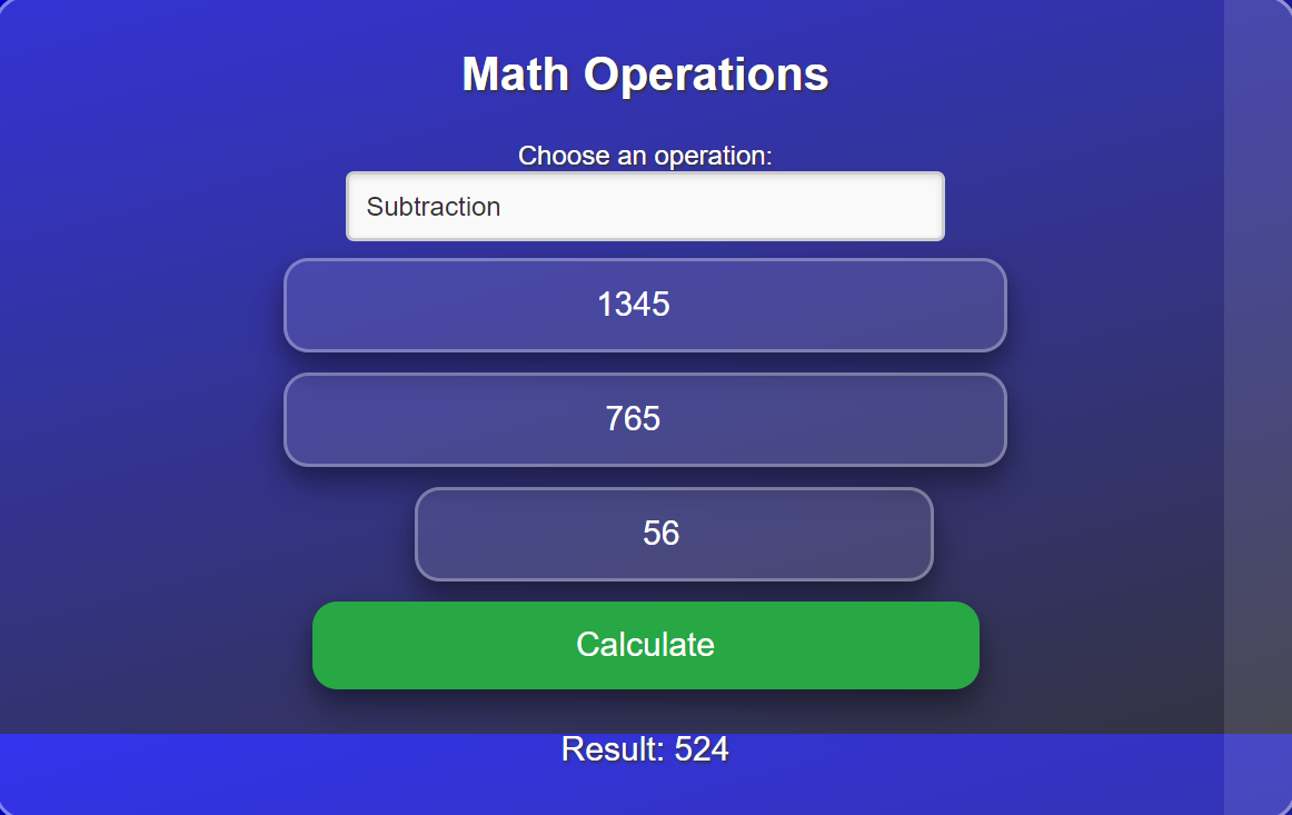 So in the output you can see that I have performed different operations of division, addition, multiplication, subtraction using the JavaScript code. The code of html and CSS I will show in the End of the post.