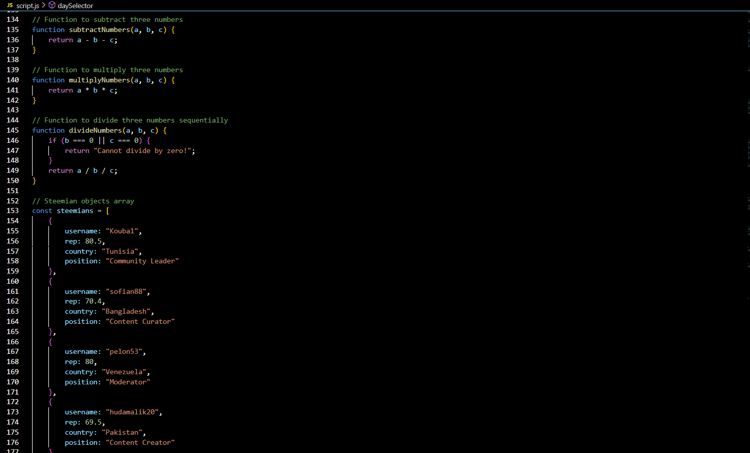 The array of steemians objects has also been implemented in a good way.