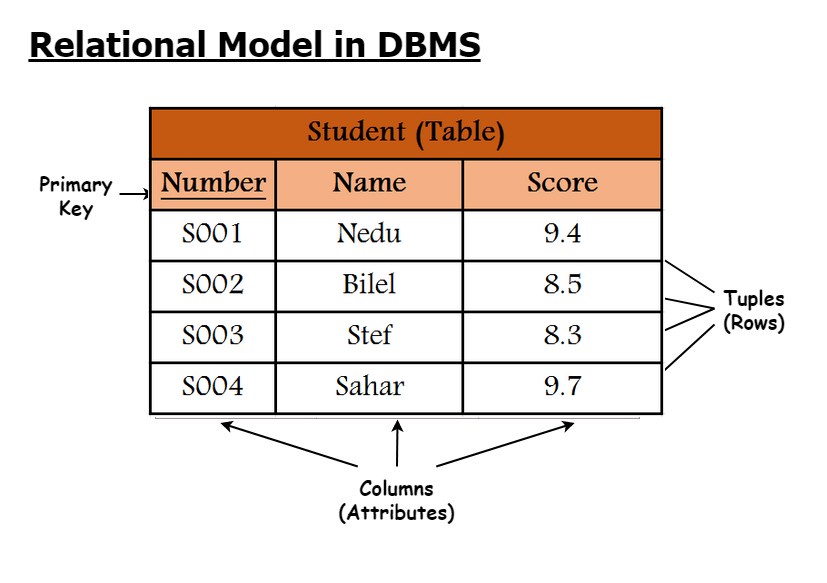 • Columns (attributes) indicating different attributes.